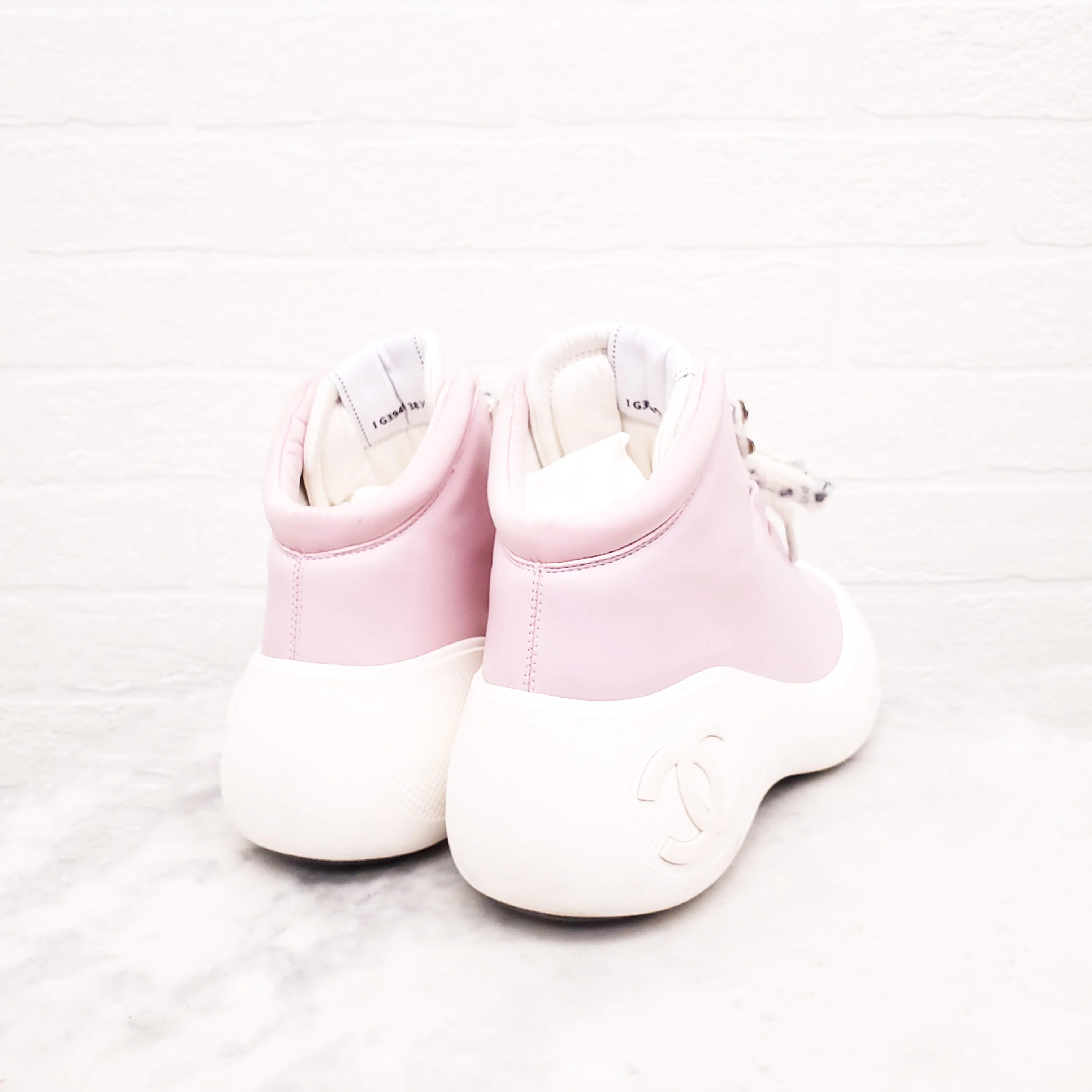 CHANEL PINK LEATHER LOGO BOOTS - SIZE 38.5
