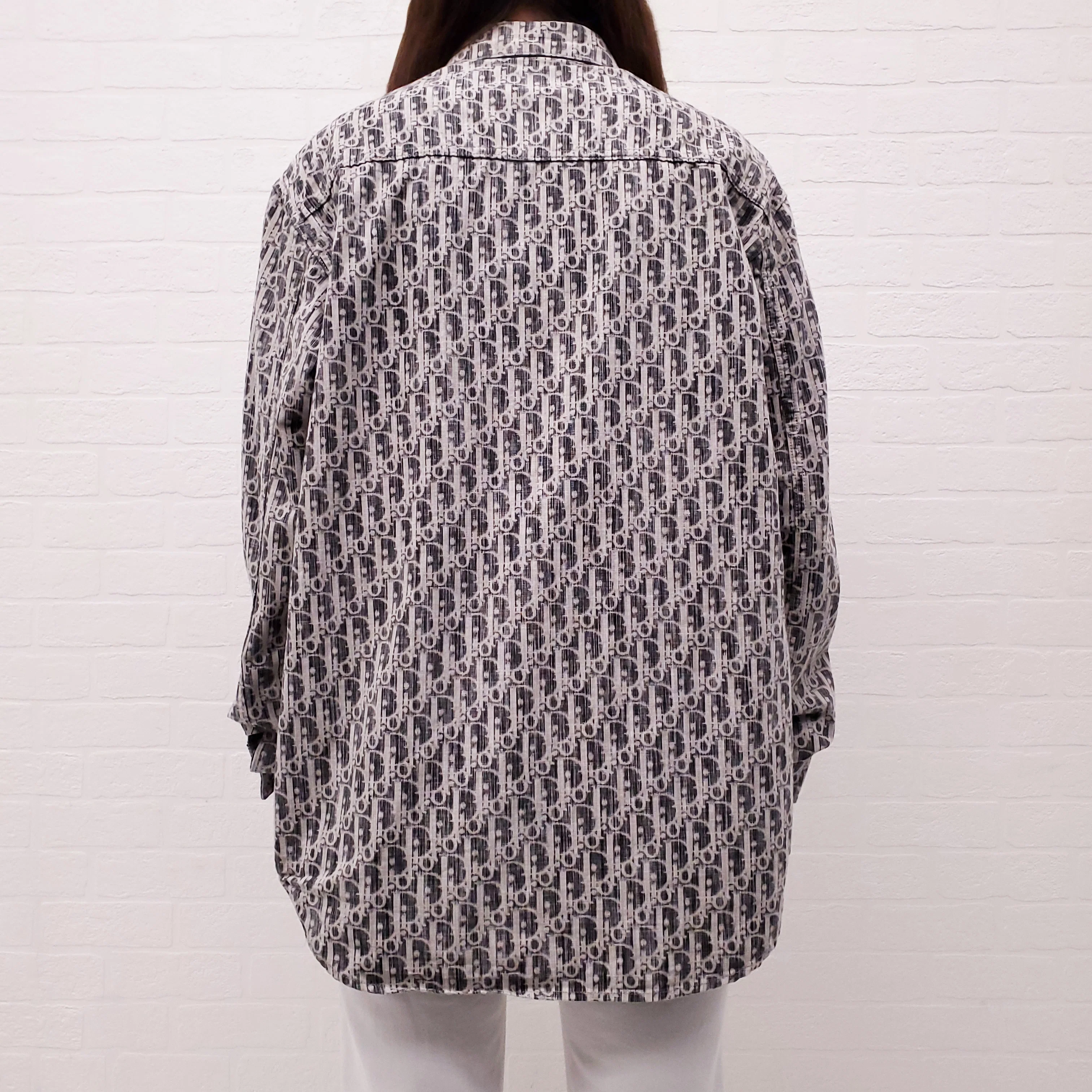 DIOR GREY UNISEX DENIM LOGO BUTTON UP SHIRT - SIZE 39/M