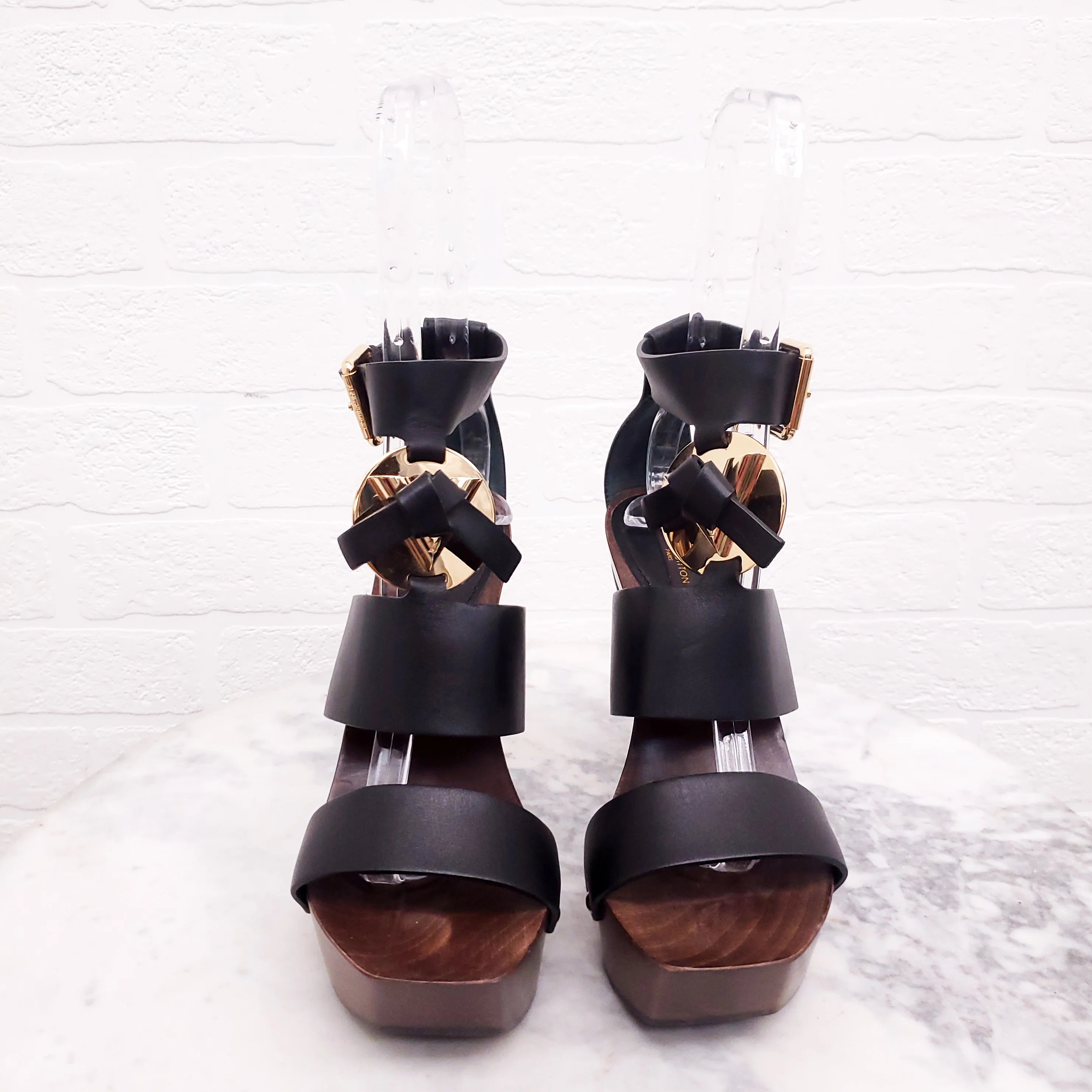LOUIS VUITTON LEATHER WOODEN PLATFORM SANDALS - SIZE 37.5