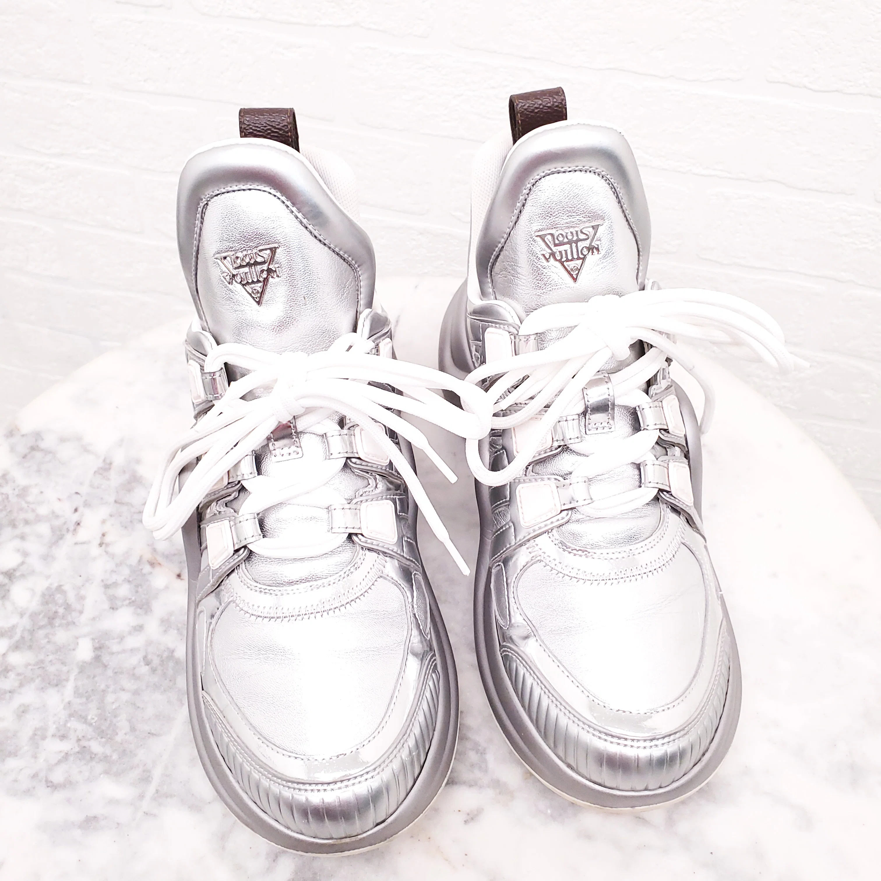 LOUIS VUITTON SILVER ARCH LIGHT CHUNKY SNEAKERS - SIZE 38