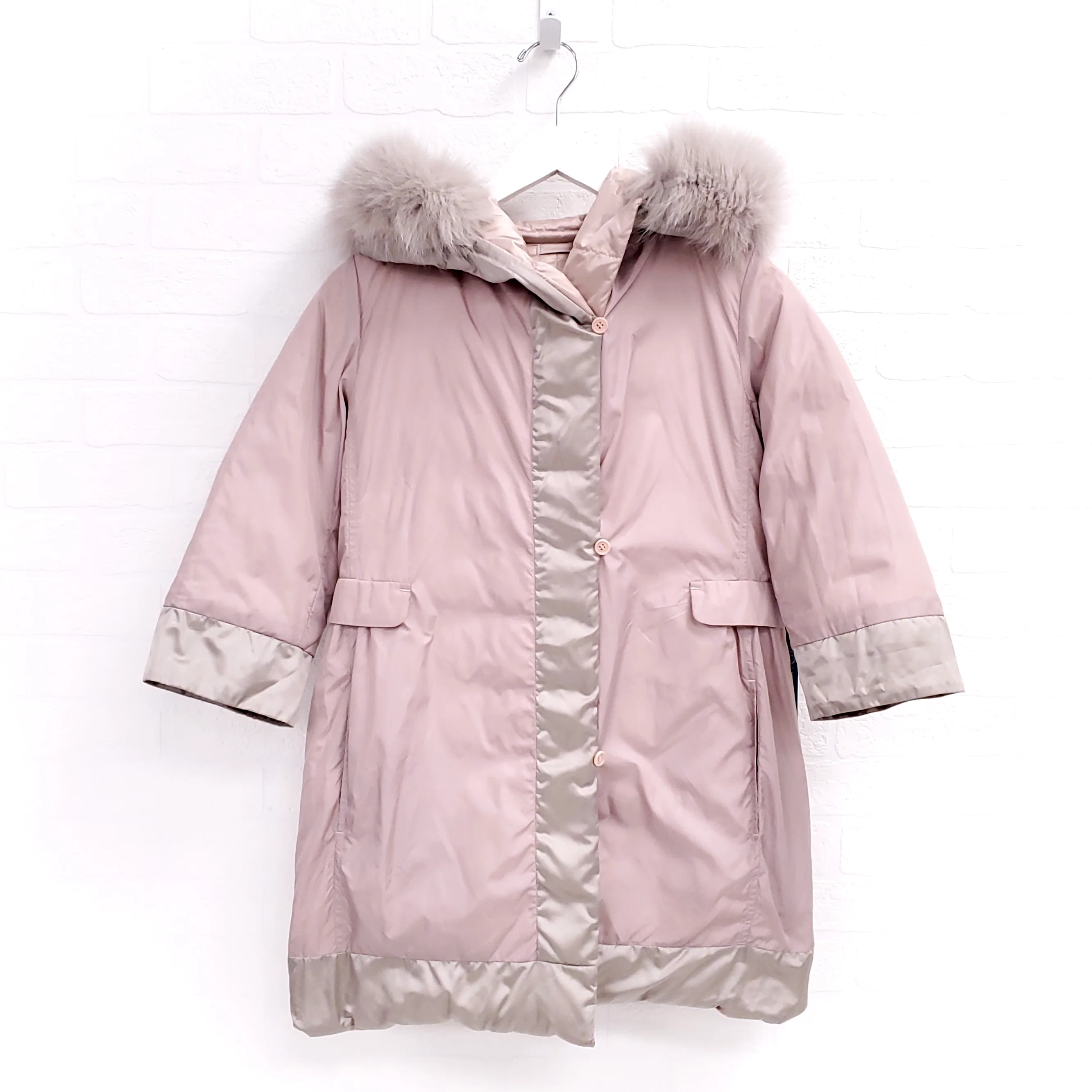 MAX MARA REVERSIBLE COAT WITH FUR HOOD - SIZE 4