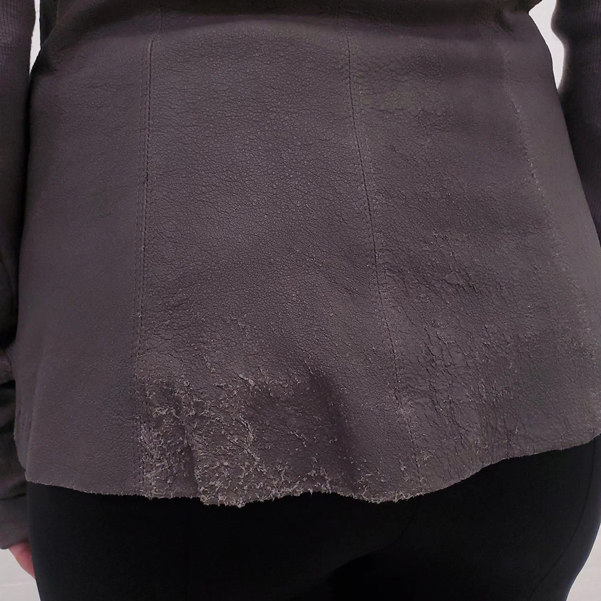 RICK OWENS DUST GREY LAMB LEATHER DRAPED JACKET - SIZE 10